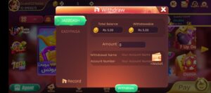 The app supports JazzCash and EasyPaisa, allowing players to deposit and withdraw money safely.
